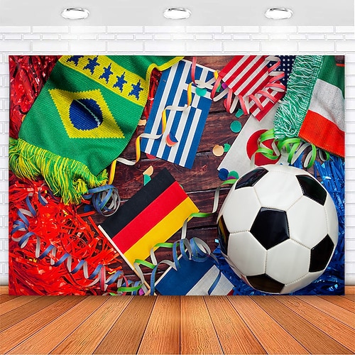 Arazzo da parete del campionato internazionale di calcio con bandiere nazionali di diversi paesi, sfondo per feste per appassionati di sport, soggiorno, decorazione per celebrazioni del torneo di