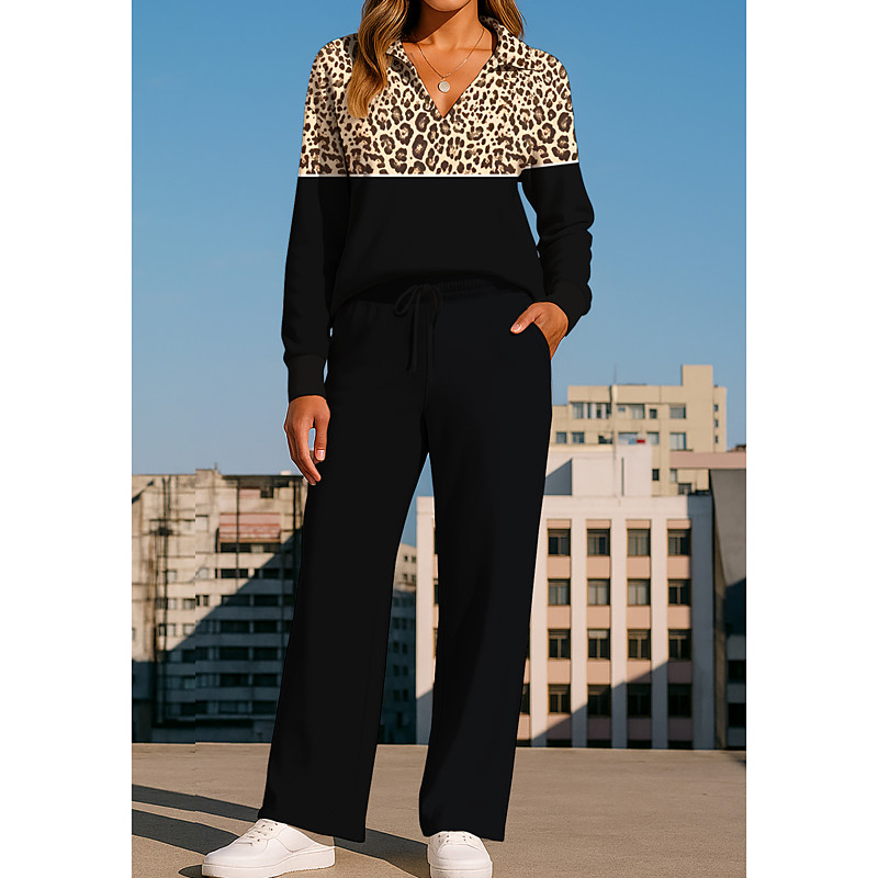Women's Sweatshirt Tracksuit Sweatpants Drawstring Pocket Leopard Jacket and Sweatpants Athletic Clothing Set Loungewear Summer Red Brown Black Gym Workout Casual Workout Thermal Warm Soft Baggy Long