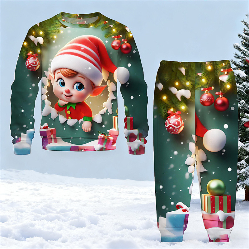 Christmas St. Patrick Unisex Boys' Girls' 3D Graphic Elf St. Patrick's elf Sports Suit Sweatshirt Sweatpants Set Tracksuits Long Sleeve 3D Print Fall Winter Sports Fashion Casual Kids 4-12 Years