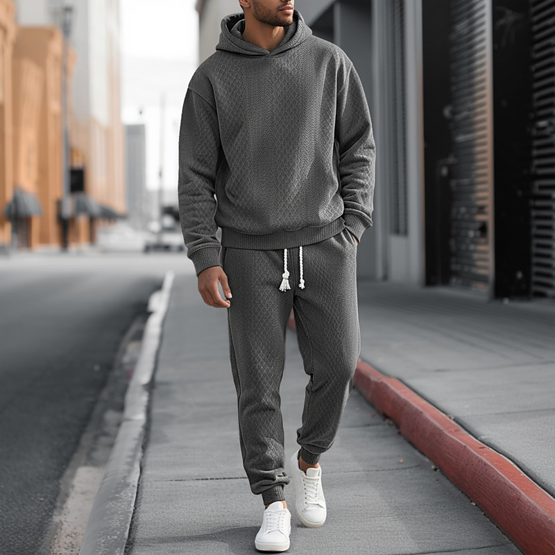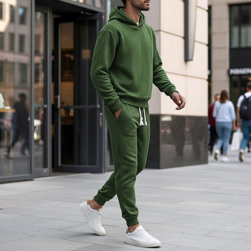 Men's Tracksuit Outfit Set Hoodies Set Hoodie Outdoor Daily Sports Jacquard Drawstring Plain Black White Khaki Activewear Fashion Streetwear Spring