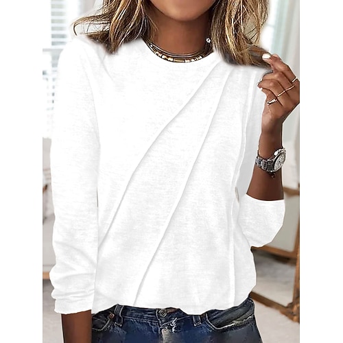 Per donna Camicia Blusa Tinta unica Vintage Elegante Classico Manica Lunga Girocollo Top Regolari Quotidiano Nero Bianco Viola Arancione Verde Primavera Autunno