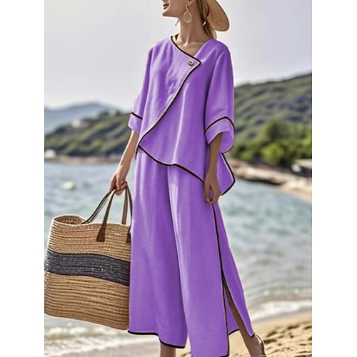 Per donna Moda Streetwear Quotidiano Set di Pantaloni Manica 3/4 Girocollo Tinta unica Patchwork Casuale Quotidiano Blu Rosa Rosso Estate Vestibilità comoda