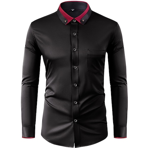 Per uomo Camicia Camicie Camicia con bottoni Color Block Matrimonio Feste Nero Bianco Vino Rosso Manica lunga Bavero Primavera Autunno Abbigliamento Collage