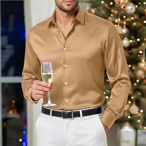 Per uomo Camicia Camicia in raso Camicia casual Camicia con Bottoni Semplice Formale Matrimonio Blu chiaro Nero Bianco Vino Manica Lunga Bavero Inverno Primavera Autunno Abbigliamento