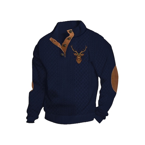 Per uomo Maglia Nero Bianco Vino Verde militare Blu marino Colletto Mao Renna Jacquard Patchwork Quotidiano Ferie Uscire Poliestere Streetwear Casual Autunno Inverno Abbigliamento Felpe con cappuccio