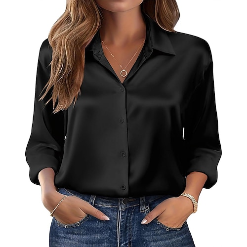 Per donna Camicia Blusa Semplice Elegante Manica Lunga Colletto a Camicia Top Regolari Quotidiano Lavoro Ferie Bottoni Blu Nero Bianco Rosa Vino Primavera Autunno