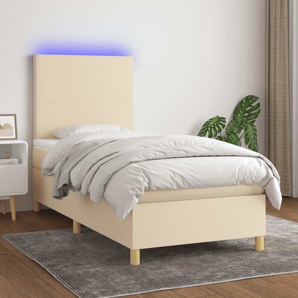 Kontinentalseng med LED-lys 80x200 cm stof cremefarvet