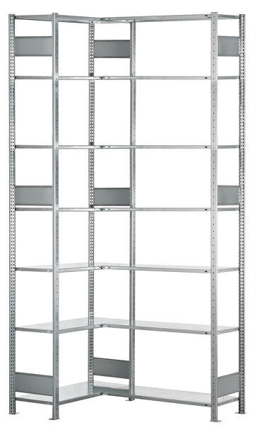 SCHULTE Lagertechnik Eckregal (Felder A + B) 3000 x 1000 x 400, 2x7 Fachböden, Längenriegel, verzinkt