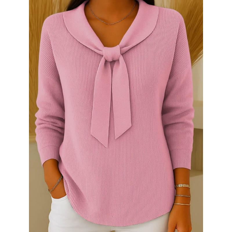 Women's Sweater Casual Soft Pure Color Ribbed Crew Neck Knitted Long Sleeve Regular Tops Knit Outdoor Daily Weekend Pink Navy Blue Fall Winter