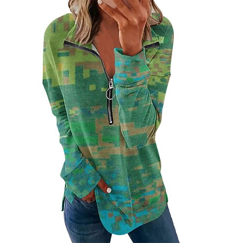 Per donna Felpa Pullover Felpe con cerniera Floreale Grafico Geometrico Elegante Caldo Moda Manica Lunga Mezza zip Top Regolari Casa Lavoro Streetwear Patchwork Stampato Zip a un quarto Blu Bianco