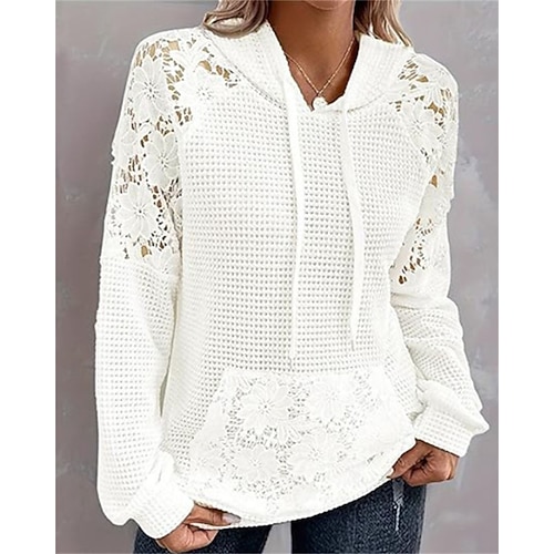 Per donna Felpa con cappuccio Floreale Semplice Elegante Caldo Moda Manica Lunga Con Cappuccio Top Regolari Casa Lavoro Streetwear Coulisse Patchwork Tasca Bianco Primavera Autunno