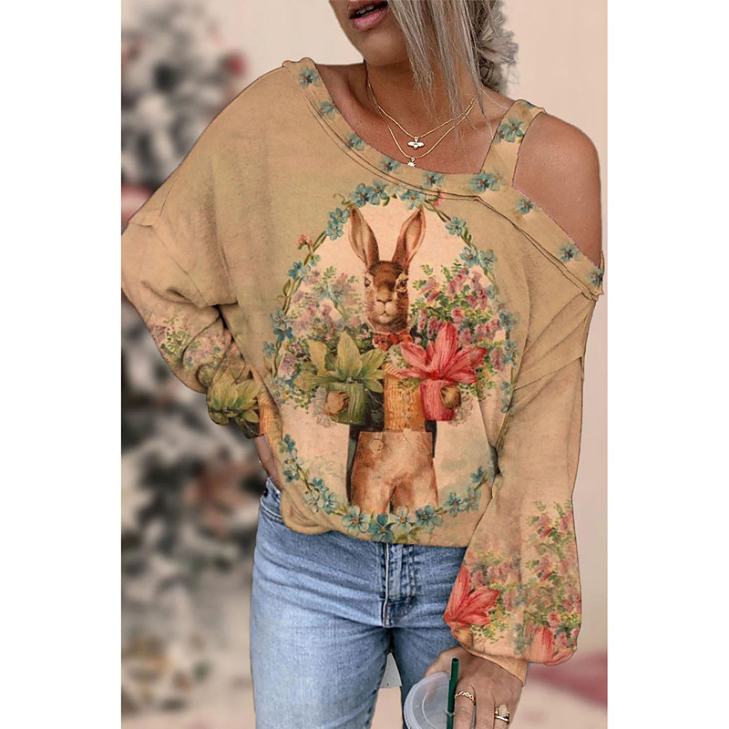 Women's Shirt Blouse Heart Carnival Casual Going out White Light Green Red Print Long Sleeve Fashion One Shoulder Regular Fit Spring Fall
