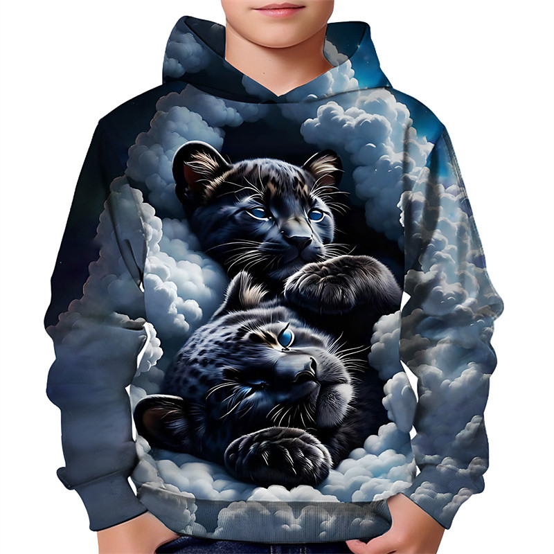 Boys' 3D Animal Leopard Hoodie Long Sleeve Spring Fall Fashion Streetwear Kids 4-12 Years Hooded Outdoor Casual Daily Regular Fit
