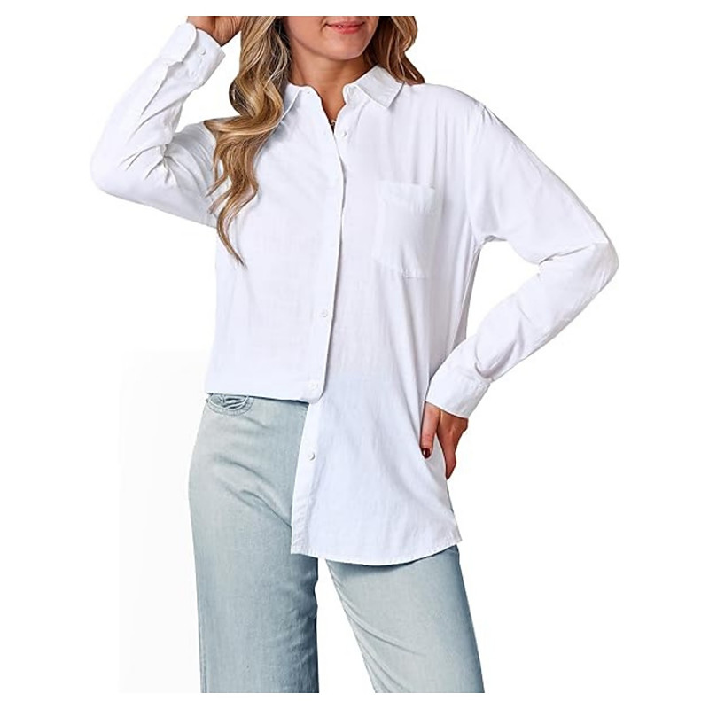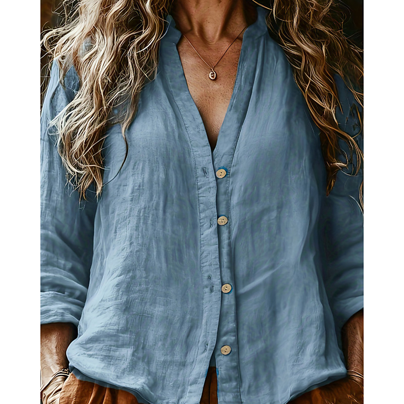 Women's Shirt Linen-Inspired Shirts Long Sleeve Shirt Collar Red Navy Blue Blue Spring Fall