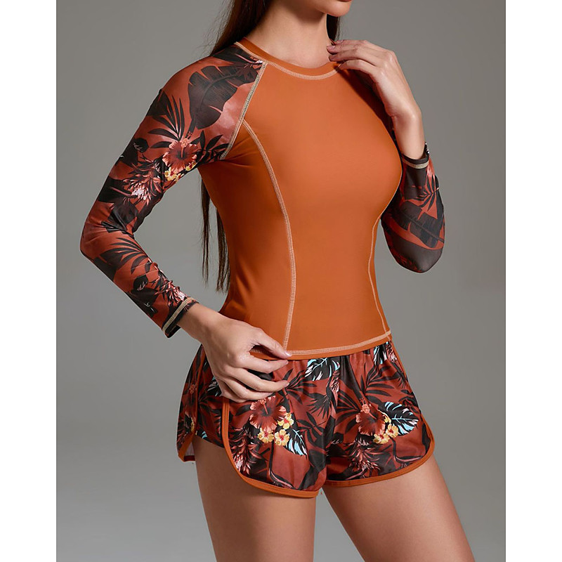 Women's Rash Guard Bathing Suit 2 Pieces Tropical Ultra Light (UL) UV Protection Elastic Long Sleeve Swimwear Zip Up Surfing Snorkeling Spring