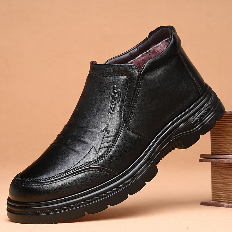Men's Black Faux Leather Slip-on Boots with Comfort Insole - Stylish Casual Footwear for Everyday Use and Outdoor Activities