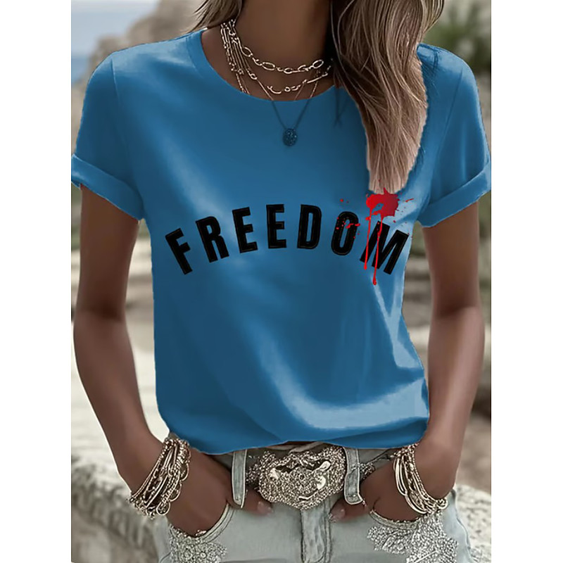 Women's Patriotic T Shirt Graphic Flag Vintage Stylish Classic Short Sleeve Crew Neck Round Neck Regular Tops Daily Weekend Print Black White Navy Blue Royal Blue