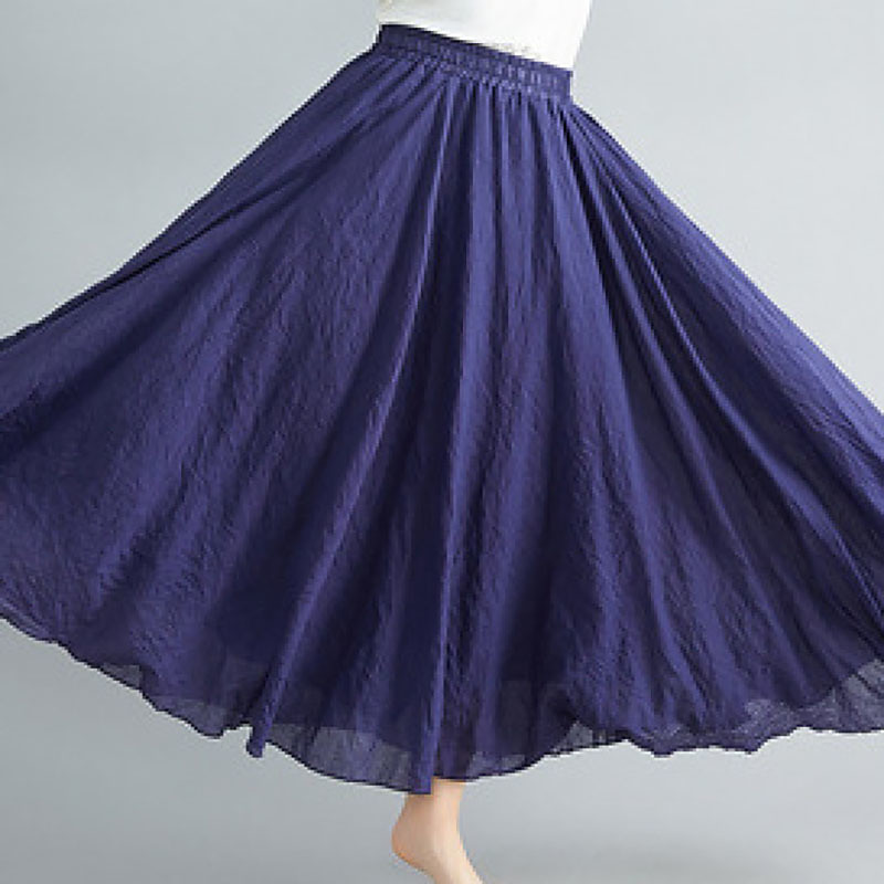 Women's Skirt Casual Maxi Mid Rise Skirts Plain Ruched Micro-elastic Daily Street Apple Green Navy Black Light Green Summer Spandex Cotton