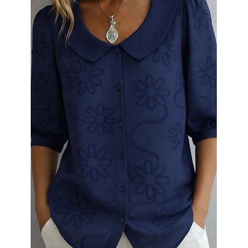 Per donna Camicia Camicia button-down Camicia casual Blusa Bottoni Floreale Elegante Classico Moderno Mezza Manica Collare Peter Pan Top Regolari Quotidiano Ferie Uscire Nero Bianco Giallo Blu marino