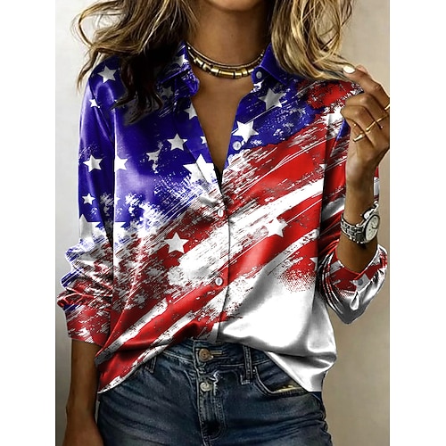 Giorno dell'Indipendenza Americana Per donna Camicia Camicia in raso Camicia button-down Camicia casual Stampato Grafico Bandiera Classico Casual Manica Lunga Colletto a Camicia Top Regolari
