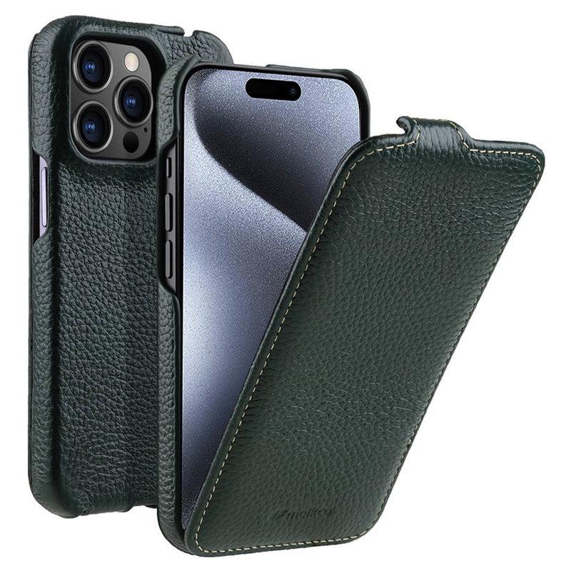 MELKCO Mobilskal till iPhone 15 Pro Max Äkta Läder + PC Vertikal - Grön