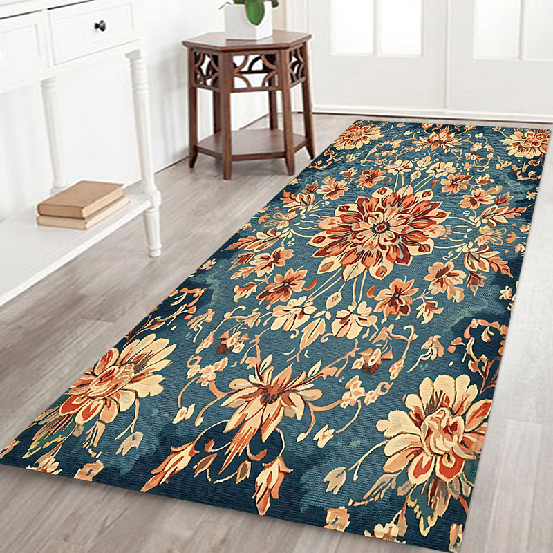 Non Slip Hallway Runner Rug Bohemian Pattern Flannel Fabric Printed Floor Mat for Entrance Bathroom and Home Decoration