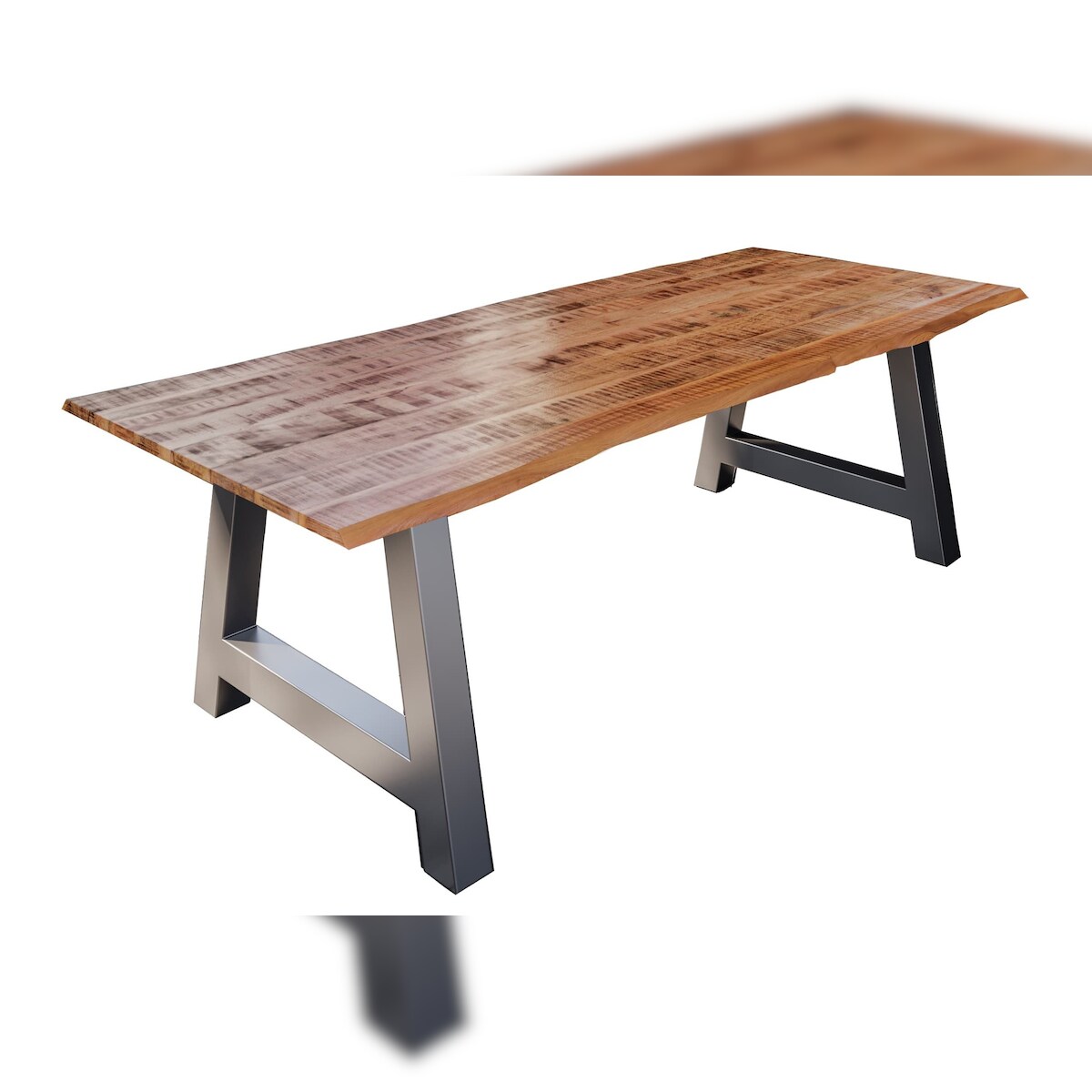 Esstisch Baumkante Massiv Mango naturfarben 240 x 100 silber A-Gestell DORA