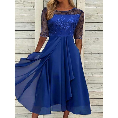 Per donna Abito Midi Abito in Pizzo Abito da Cocktail Abito da invitata a nozze Vestito in Chiffon Elegante Formale Feste Matrimonio Vestibilità regolare Mezza Manica Girocollo Blu Viola Verde Blu