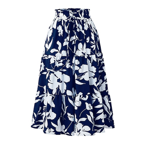 Per donna Gonna Elegante Moda Casual Midi Vita Alta Gonne Floreale Coulisse Stampato Micro-elastico Quotidiano Streetwear blu navy Rosso bordeaux Nero Verde Estate Spandex Poliestere