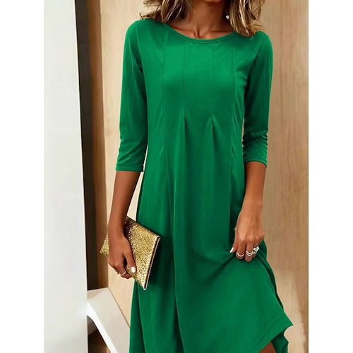 Per donna Abito Midi Abito a Tubino Casual Quotidiano Vestibilità comoda Semplice Manica 3/4 Girocollo Nero Vino Verde Blu scuro Estate Primavera Autunno