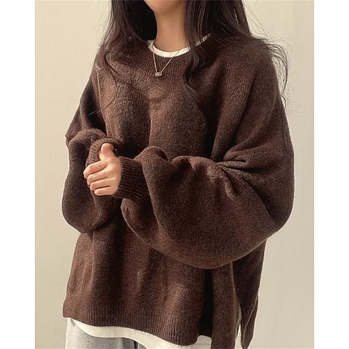 Per donna Felpa Casual Morbido Colore Puro A Coste Girocollo Lavorato a maglia Manica Lunga Top Regolari Maglia All'aperto Quotidiano Weekend Nero Rosa Autunno Inverno