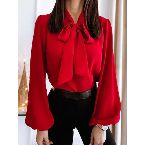 Per donna Blusa Tinta unica Elegante Casual Formale Manica Lunga Colletto a Camicia Top Regolari Quotidiano Fiocco Nero Bianco Rosso Verde Primavera Autunno Inverno