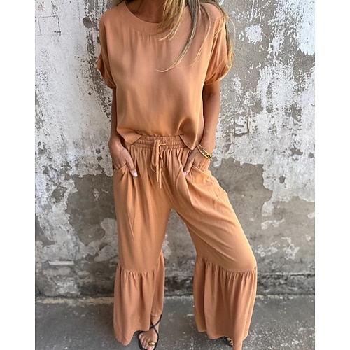 Per donna Moda Streetwear Maglietta Set di Pantaloni Bolero Top Manica Corta Girocollo Semplice Casuale Quotidiano All'aperto Nero Verde militare Arancione Estate Vestibilità regolare