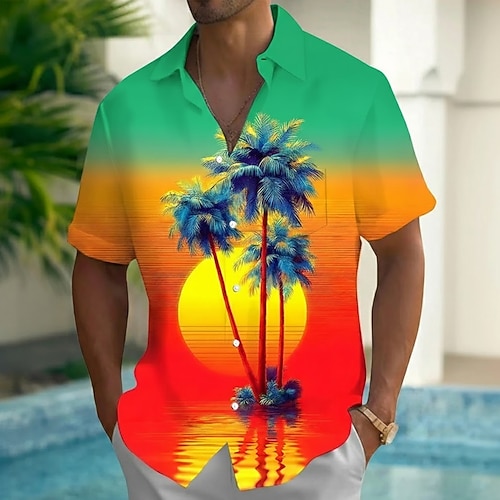 Per uomo Albero di Cocco Colore sfumato Alba Camicia hawaiana estiva Camicia con Bottoni Camicia Aloha Manica Corta Hawaiano Vacanza al Mare Estate Primavera Collo ripiegato Stampa 3D camicie con