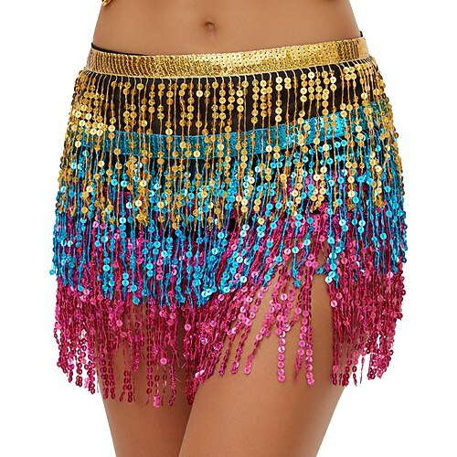 Carnival 2026 Costumi per la Performance di Samba del Carnevale di Rio Gonna da Danza del Ventre in Paillettes con Frange Gonna Avvolgente Brillante con Paillettes e Monete Costume per Festival