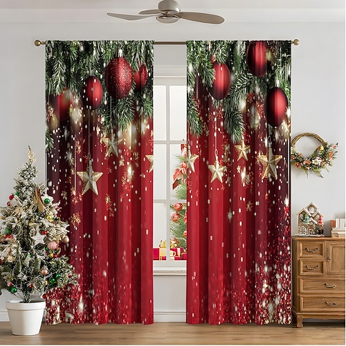 Tende con motivi natalizi, stampa digitale 3D, tende ad alta precisione per soggiorno, camera da letto, decorazioni natalizie, set di tende per la casa in tessuto morbido