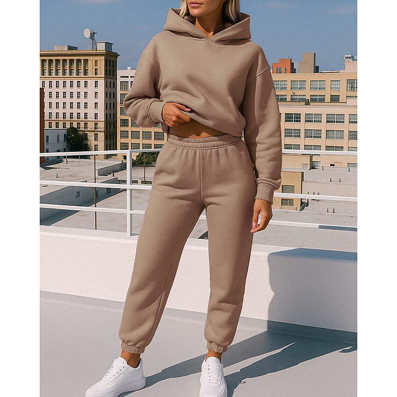 Women's 2 Piece Tracksuit Lounge Hoodie Sweatsuit Sets Solid Colored Clothing Suit Fall Black White Workout Outdoor Travel High Waist Lightweight Fashion Long Sleeve Sport Activewear Micro-elastic