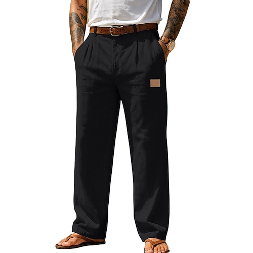 Per uomo Pantaloni di Lino Pantaloni Pantaloni Estivi Pantaloni Larghi Tasca Elastico in vita Semplice Comodità Traspirante Lunghezza intera Quotidiano All'aperto Affari Moda Stile Classico Blu Nero