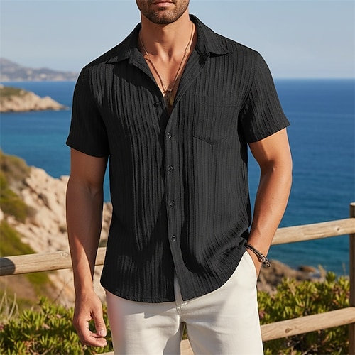 Per uomo Camicia Maglia a coste Camicia casual Camicia con Bottoni Nero Bianco Rosa Rosso Blu reale Manica Corta Semplice Colletto a Camicia Casuale Quotidiano Tasca Frontale Abbigliamento Elegante