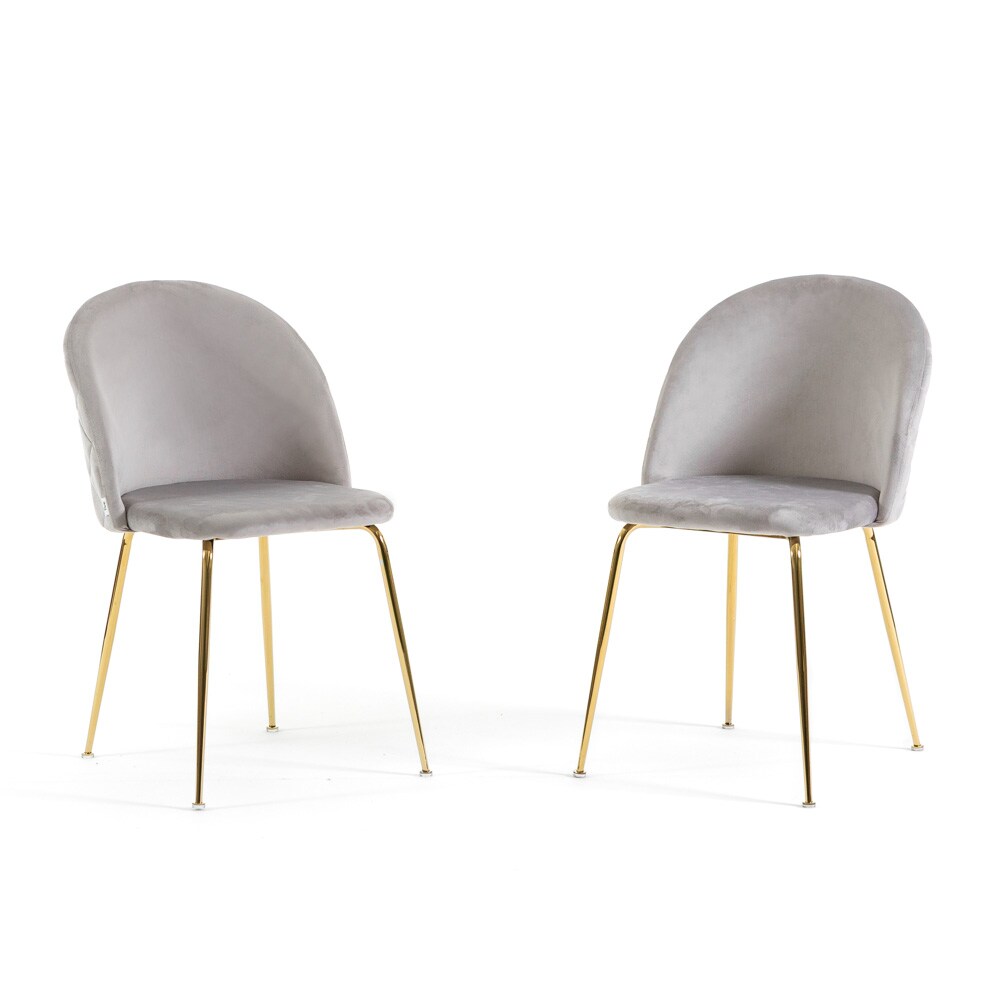 RATTATAN Set aus 2 Innenstühlen aus Samt, gepolstert, mit Metallbeinen, elegantes Design für Esszimmer, Bar und Restaurant – Sara – Hellgrau/Gold