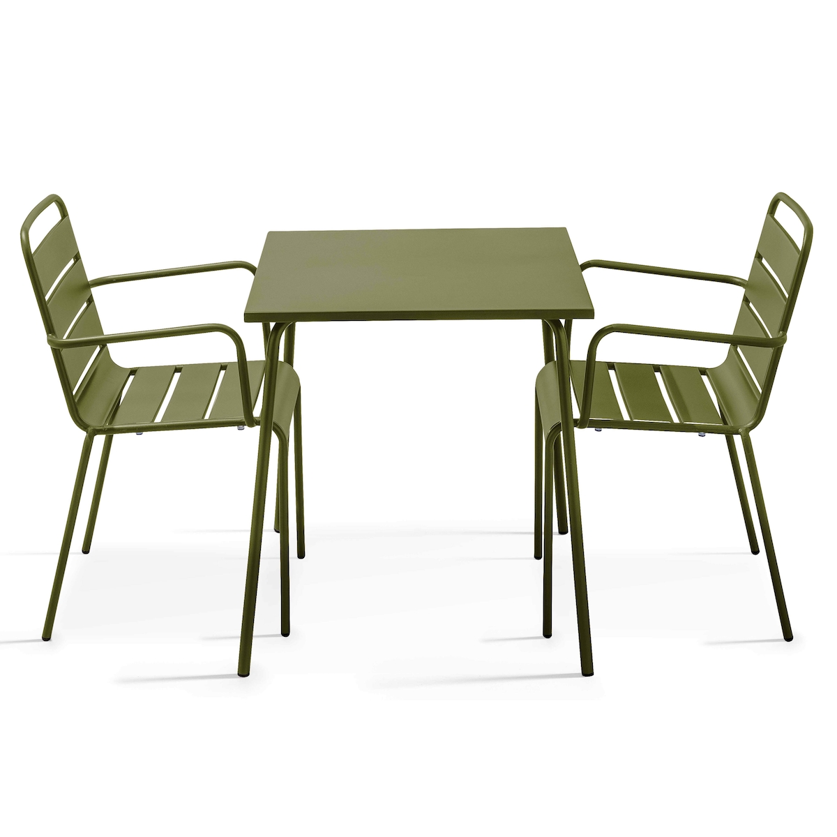 Oviala Business Bistrogartentisch und 2 Sessel aus pulverbeschichtetem Stahl Khakigrün