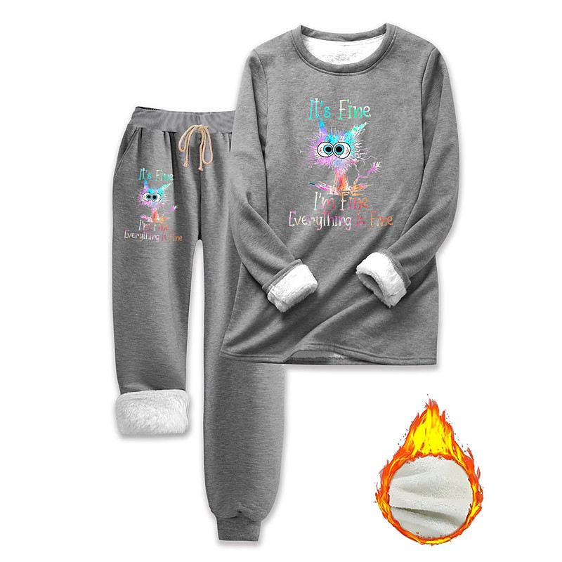 Women's Pajamas Set Fleece Lined Elegant Warm Fashion Two Piece Sets Tracksuit Pants Sets Long Sleeve Crew Neck Graphic Animal Letter Print Outdoor Daily Black Dark Pink Blue Springt