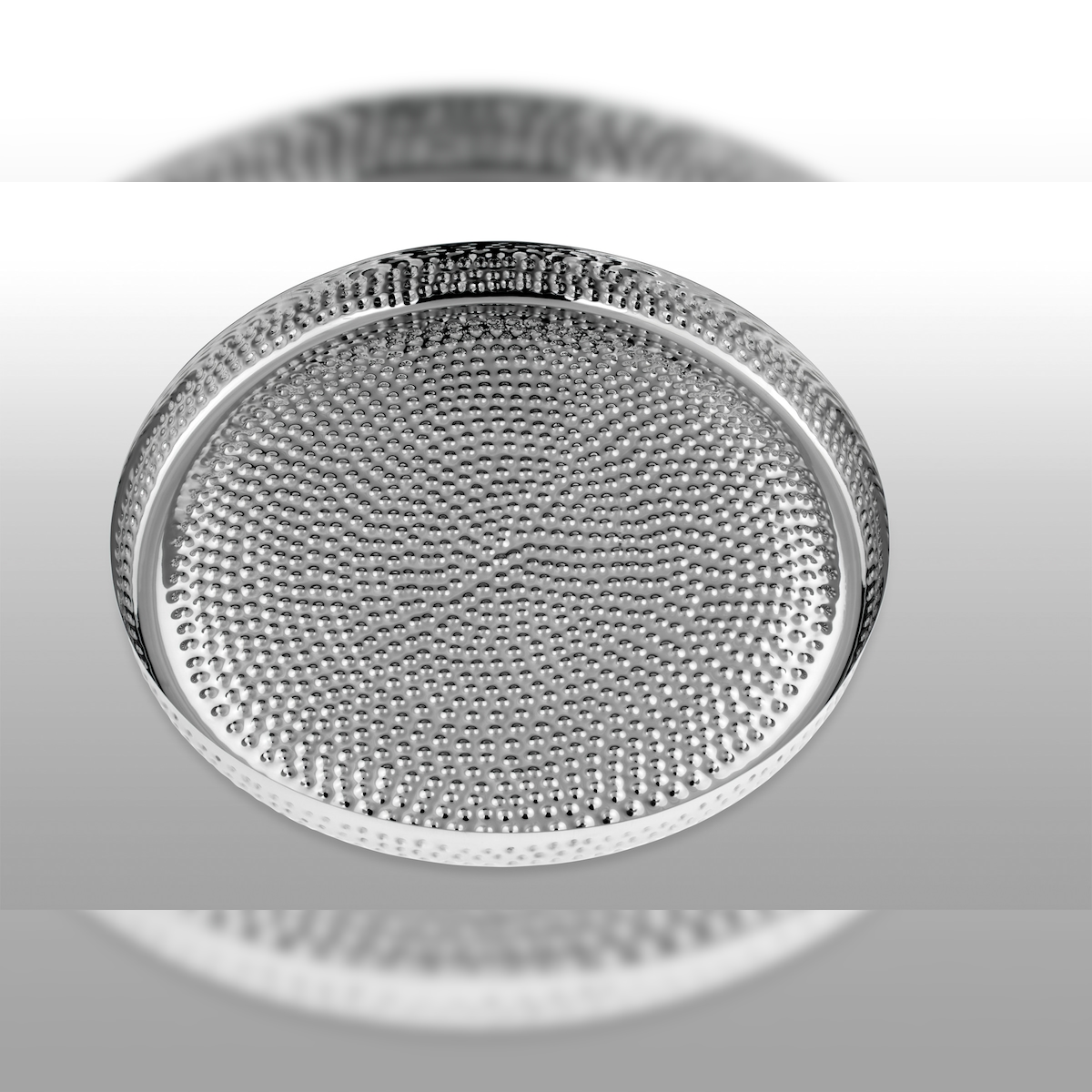 Tablett rund, gehämmert Edelstahl D: 39,0cm, H: 4,0cm