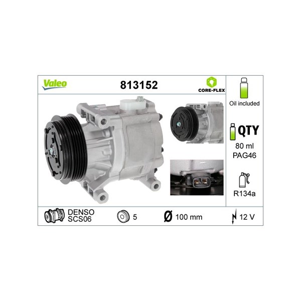 Kompressori, ilmastointilaite 12V Valeo 813152 - fiat, lancia - OE 51746931, 52060460