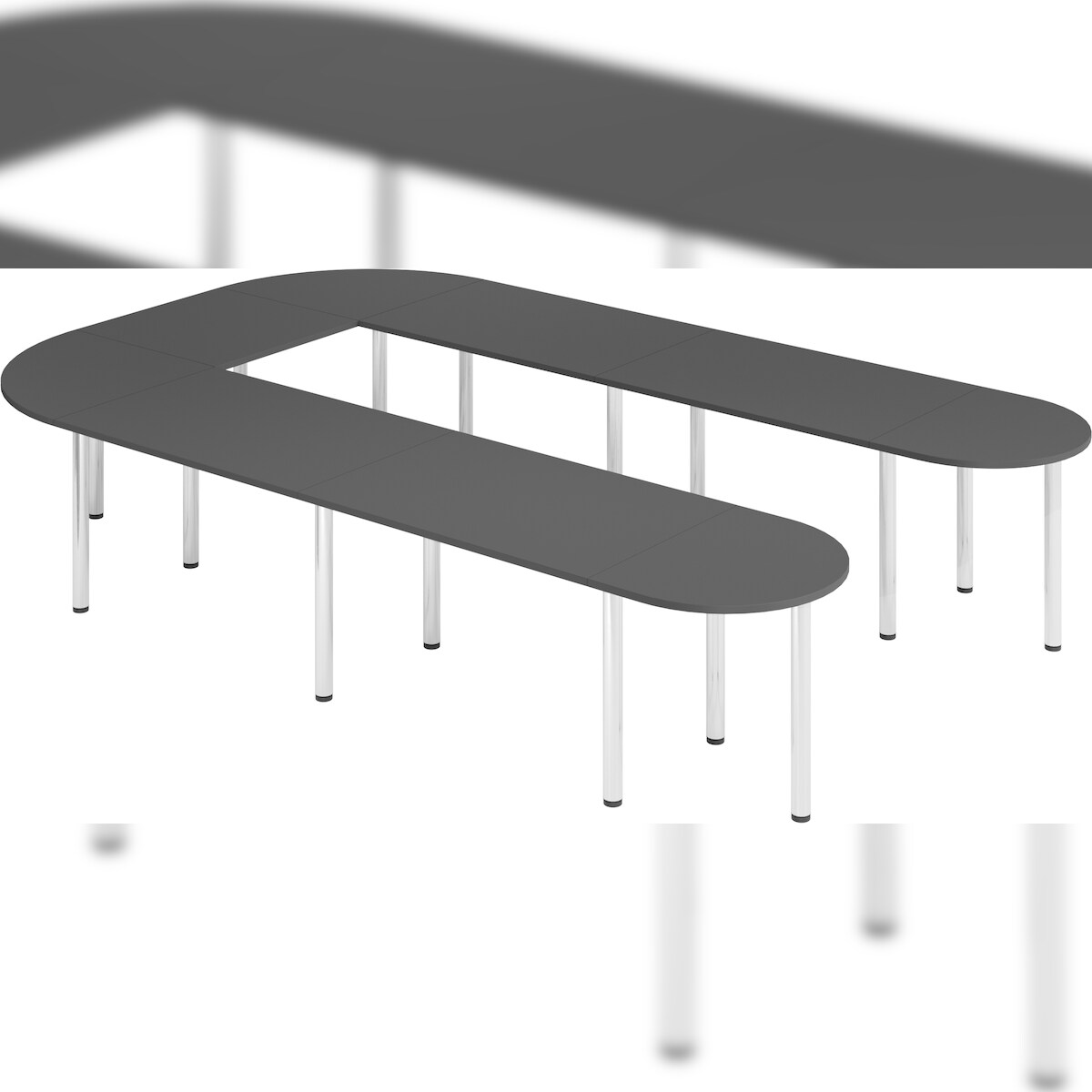 bümö Konferenztisch U-Form 380x240 cm großer Besprechungstisch in graphit, Besprechungstisch mit Chromfüßen, Meetingtisch für 11 Personen, Tisch für