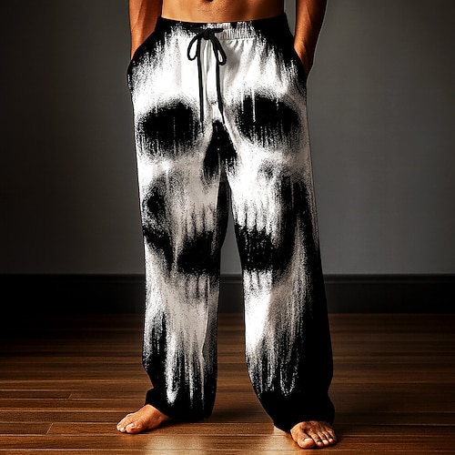 Costumi da uomo teschio pantaloni pantaloni baggy pantaloni casual vita media stile gotico scuro vacanza vita con cordoncino elastico pantaloni simili al lino con tasche estate primavera autunno 3D