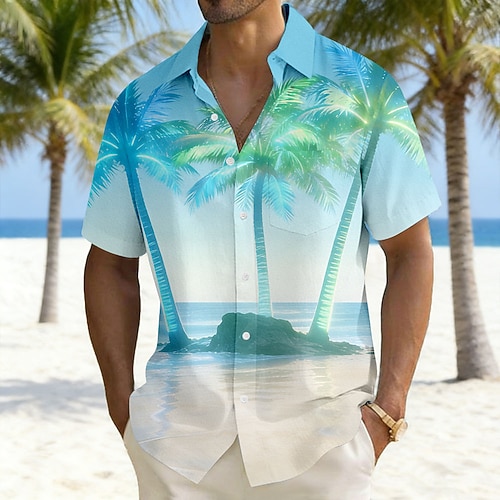 Per uomo Albero di Cocco Colore sfumato Piante Tropicali Camicia Camicie hawaiane Camicia Aloha Manica Corta Hawaiano Vacanza Ferie Estate Collo ripiegato Stampa 3D Una tasca anteriore Camicia tipo
