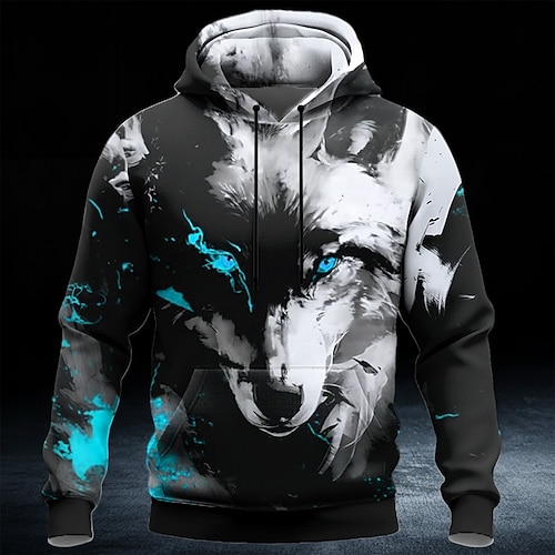 Per uomo Lupo Felpa con Cappuccio Felpa 3D Fantasia Manica Lunga Girocollo Regalo Club Abbigliamento casual alla moda Blu 1 Blu 2# Coulisse Autunno Inverno progettista S M L XL XXL XXXL