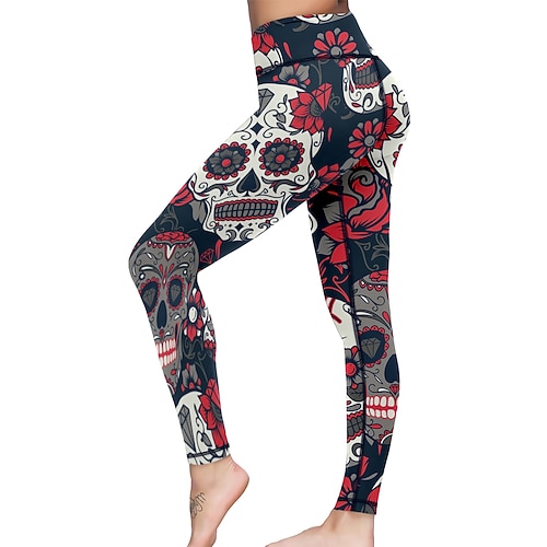 Per donna Pantaloni da yoga Sollevamento glutei Controllo addominale Vita Alta Allenamento in Palestra Corsa Fitness Collant Leggings Pantaloni Teschio Rosso Autunno Inverno Gli sport Abbigliamento