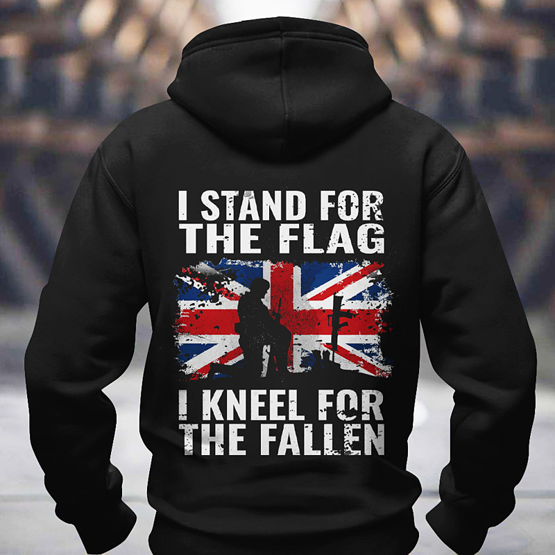 Men's Patriotic British Flag Hoodie 'I Stand For The Flag I Kneel For The Fallen' Soldier Remembrance Graphic Hooded Sweatshirt